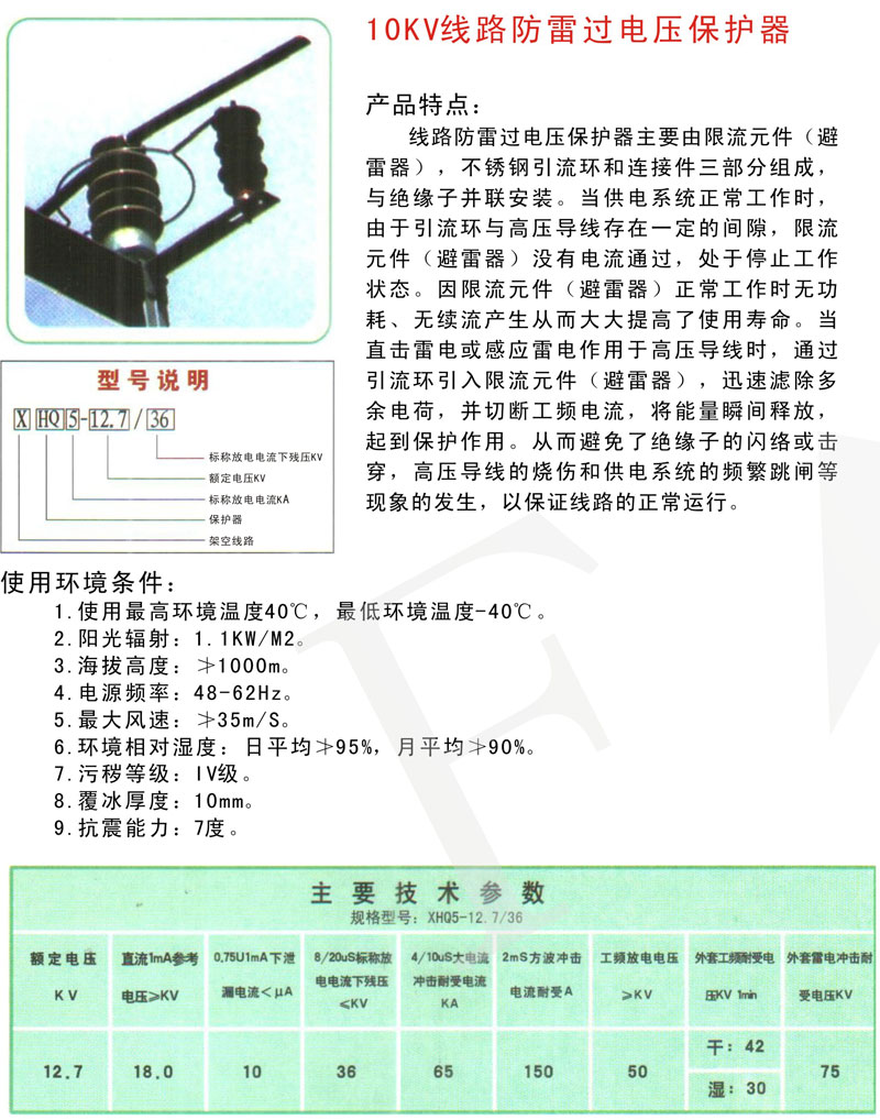 10KV线路防雷过电压保护器
